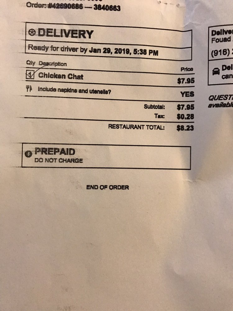 Crisp homemade chips topped with chickpeas, onions, potatoes, spice mix yogurt and sev (homemade chickpea crispy noodles), tamarind chutney, and light chili chutney.